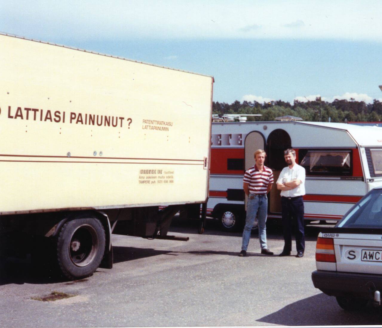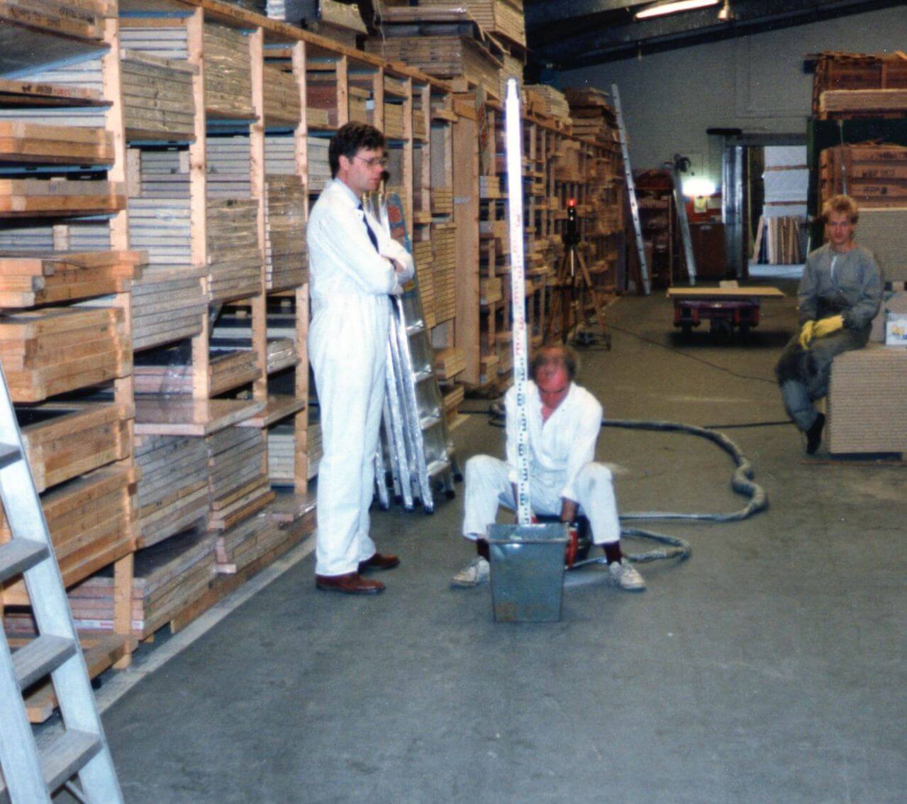 Veikko hade uppfunnit ett sätt att byta ut cement och puts mot ett geopolymer som snabbt och enkelt lyfte golv utan att behöva bygga om. Det var exakt vad butikschefen sökte. Med en stark tro om att han hittat en lösning på ett allvarligt problem patenterade Veikko sin uppfinning år 1983.